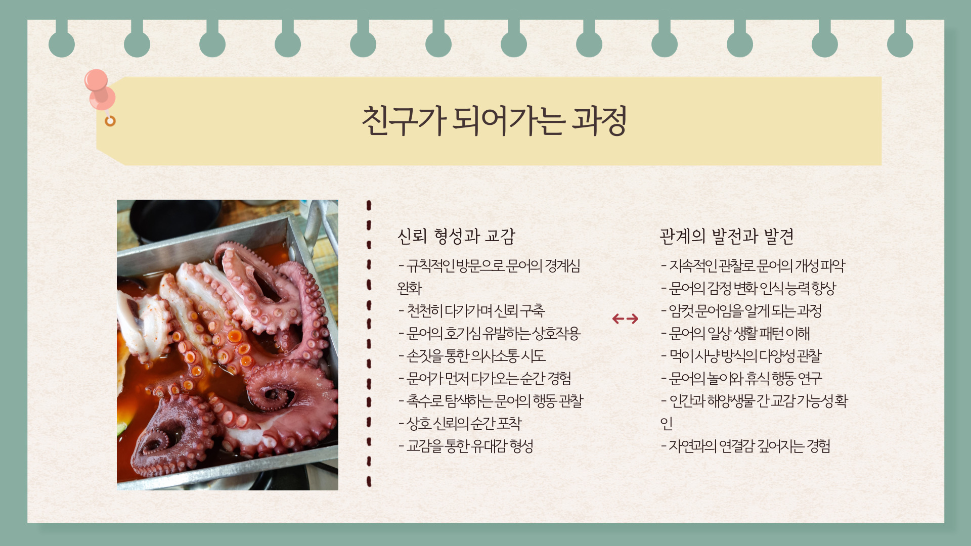 핵심 키워드: 신뢰, 교감, 손짓, 암컷 문어