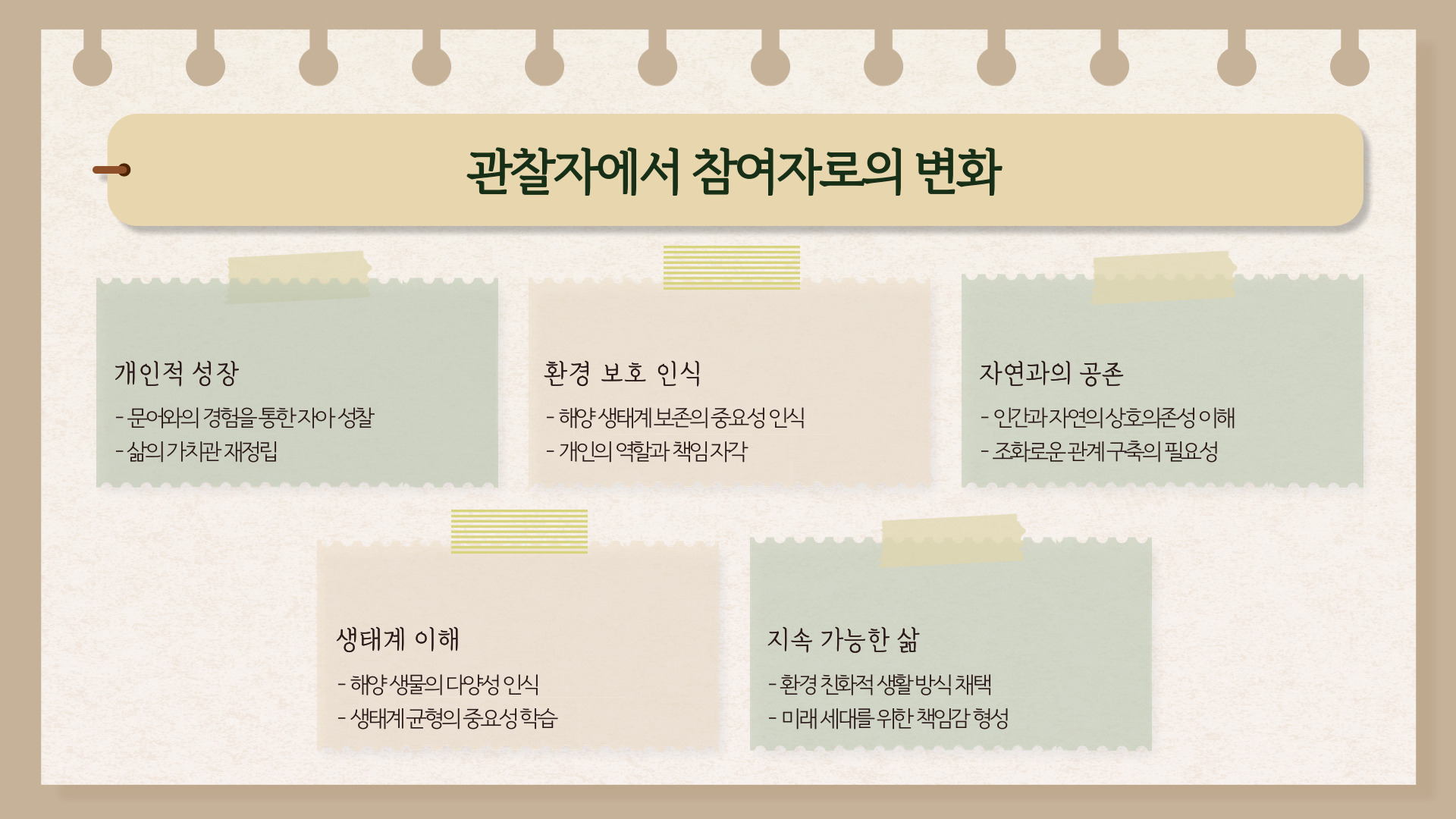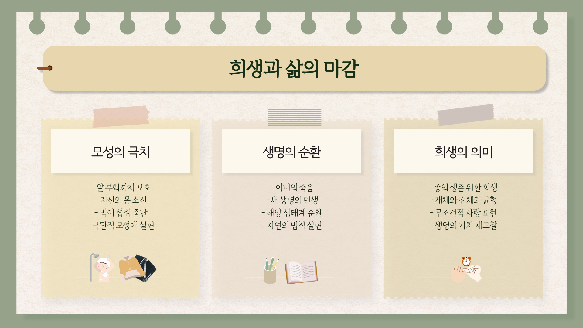 주제문: 문어의 생애를 지켜보며 나는 생명의 순환과 진정한 희생의 의미를 깨달았다.