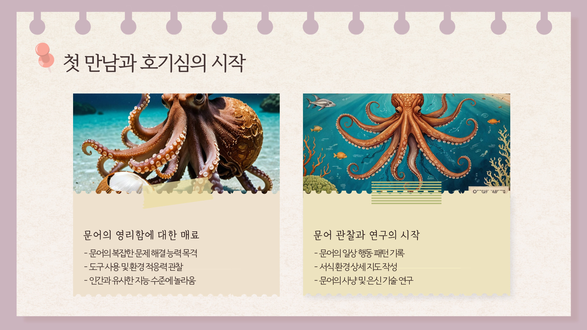 핵심 키워드: 관찰, 호기심, 문어, 영리함